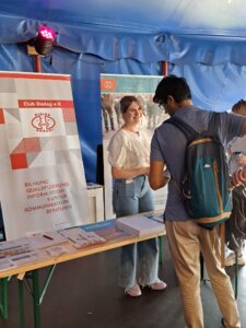Am 2.09.2023 lud das Landesamt für Flüchtlingsangelegenheiten (LAF) zum Ehrenamtstag ins Cabuwazi-Zelt auf dem Tempelhofer Feld ein. Es wurden Projekte des Clubs Dialog vorgestellt, wie zum Beispiel „Vitamin P: Ankommen- und Chancenpatenschaften für Geflüchtete aus der Ukraine“, Bundesfreiwilligendienst und Berlin Volunteer Support. Wir konnten uns mit Kolleginnen und Kollegen aus Ehrenamts Hilfe sehr gut austauschen, vielen neue Kontakte gewonnen und viele neue Gesandtschaften gemacht.